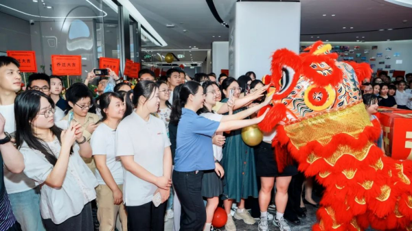 点睛启金,财源广进!仪式现场,专业醒狮团队带来气势磅礴的舞狮表演,鼓乐齐鸣、瑞狮腾跃,将庆典氛围推向高潮。方位董事长刘建兵先生和首席执行官(CEO)冯波先生亲自为祥狮点睛,寓意方位慧眼识势、鸿运当头,激发新址活力,迎接腾飞之势。