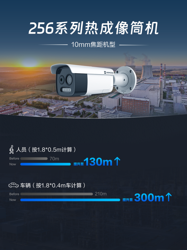 大模型热成像周界摄像机全系升级为12微米高灵敏度机芯,相比以往产品,在观测同等距离下的同一物体,可获得更多有效像素。同步搭载自研AI-ISP图像降噪和复原算法,显著提升细节还原力,为周界应用提供更清晰的感知图像。