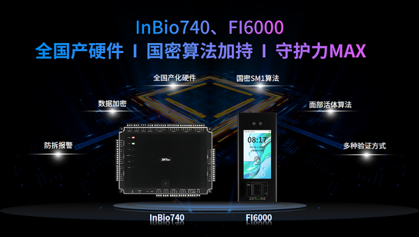 门禁控制器inBIO740与多模态采集智能终端FI6000,基于全国产化硬件架构,深度融合国密SM1系列算法,实现数据全流程加密防护。系统支持面部、指纹、二维码、刷卡、密码等多种验证方式,内置活体检测与防拆警报机制,构筑多层次安全防线,重新定义准入标准。