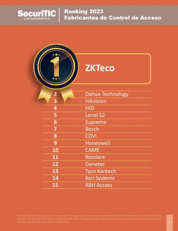 去年,拉丁美洲著名安全科技媒体SecuriTIC Latinoamerica公布的拉美地区2023出入口控制门禁品牌Top15榜单中,熵基科技位居第一。