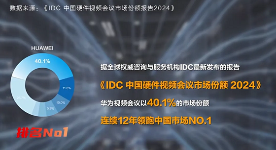 视频会议市场份额报告 2024》,其中显示华为视频会议以40.1%的市占率,连续12年蝉联我国视频会议领域鳌头。