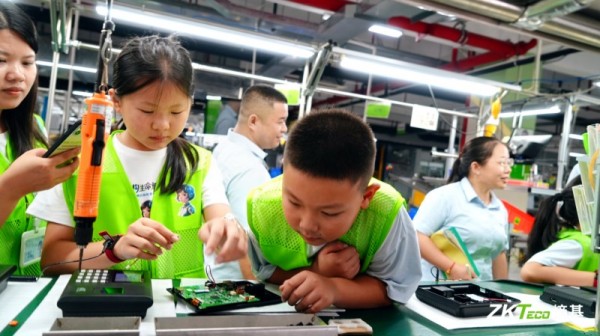 在专业技术员指导下,他们化身“小小工程师”,亲手组装智能考勤设备:从识别零部件到精确咬合接口,从调试程序到功能测试,每一步都考验着对细节的把控,每一次尝试都饱含探索的激情。当亲手组装的设备成功启动时,成就感如阳光般绽放于脸庞,科技的种子也在实践中悄然生根发芽。