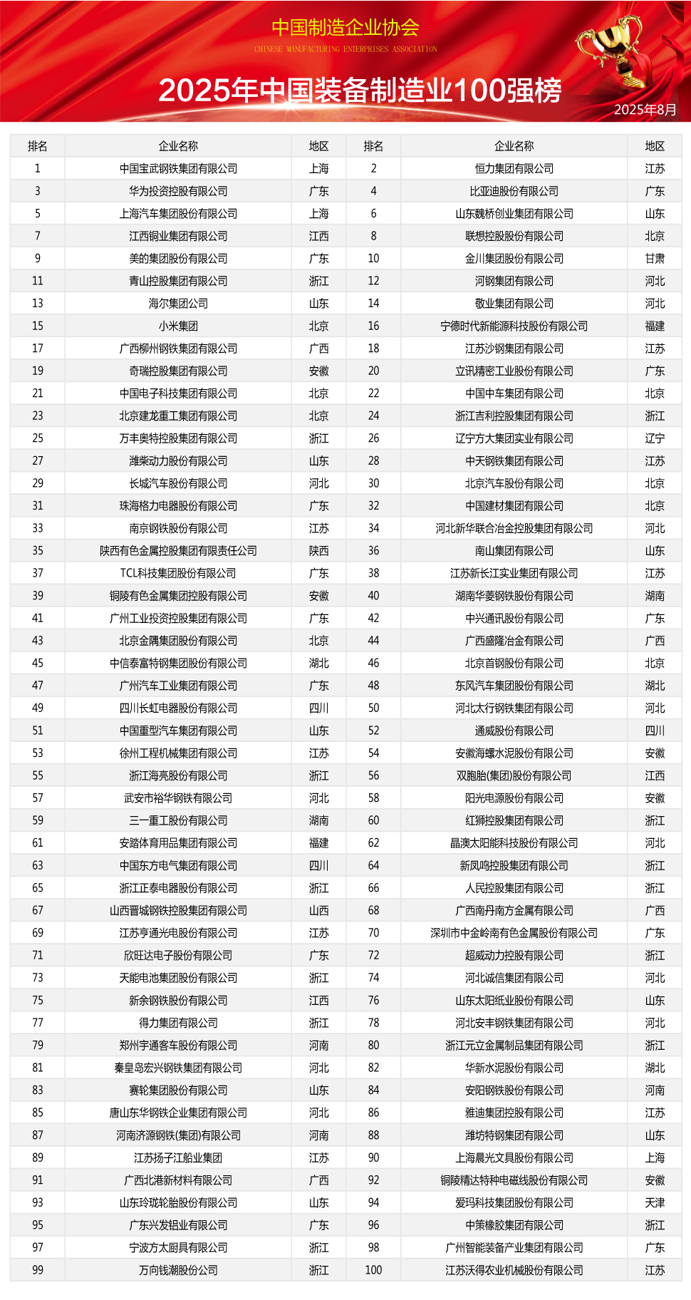 近日,由中国制造企业协会主办的2025中国制造业综合实力200强暨中国装备制造业百强榜单正式发布。作为国内制造业领域极具权威性的行业组织,中国制造企业协会始终致力于推动制造业的高质量发展,此次榜单的发布,旨在全面梳理中国制造业及装备制造业的发展成果,为行业内企业搭建交流与学习的平台,助力企业明确发展方向,同时也为政府部门制定产业政策提供有力参考,进一步彰显了中国制造业在各领域的强劲发展态势。