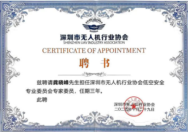 展会同期,深圳无人机行业协会低空安全专委会正式公布专家委员聘任名单,大公博创董事长龚晓峰凭借在低空安全领域多年的技术深耕与实践经验,成功获聘该专委会专家委员。这一聘任不仅是对龚晓峰董事长个人专业能力与行业贡献的高度认可,更意味着大公博创将深度参与低空安全行业标准制定、技术交流与产业协同工作,进一步夯实企业在低空安防领域的行业引领地位。
