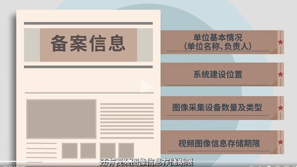 一是从备案目的来看,主要是为加强相关部门事中事后监管,规范公共安全视频系统的建设使用,实现维护公共安全、保护个人信息安全的目的。二是从备案范围来看,仅限于条例第七条规定的城乡主要路段、广场和人员聚集场所、交通枢纽、大中型公共交通工具等公共场所建设安装的公共安全视频系统,并不要求所有类型的公共安全视频系统均要备案。三是从备案内容看,仅要求相对人提供单位基本情况、公共安全视频系统建设位置、图像采集设备数量及类型、视频图像信息存储期限等基本信息,没有事前审核要件,不与系统检验、验收等挂钩,不收取任何费用,不属于行政审批。四是从备案方式来看,除提供线下备案途径外,还部署基于互联网的备案平台,可选择线上备案,备案网址为:https://psvs.mps.gov.cn。